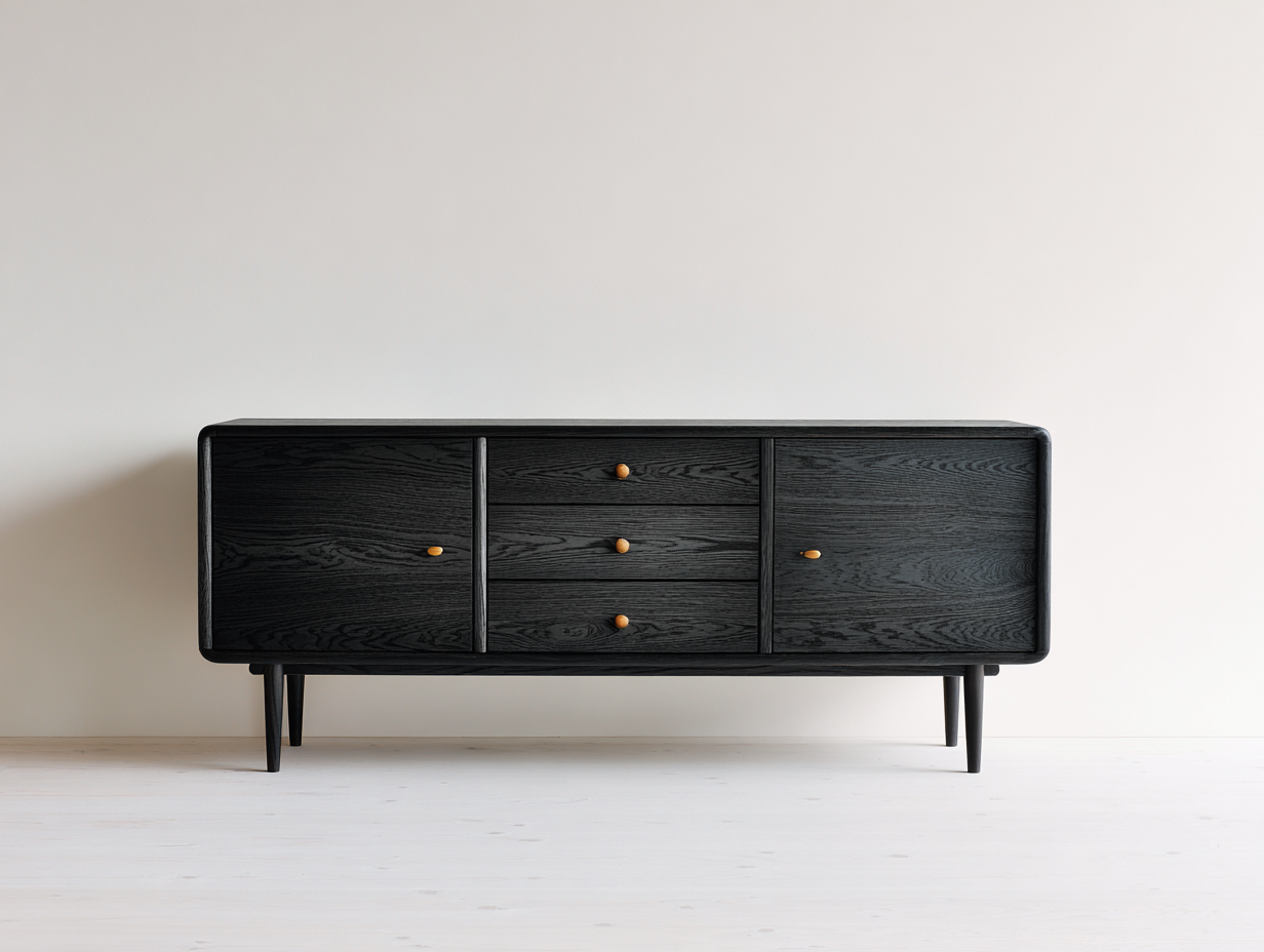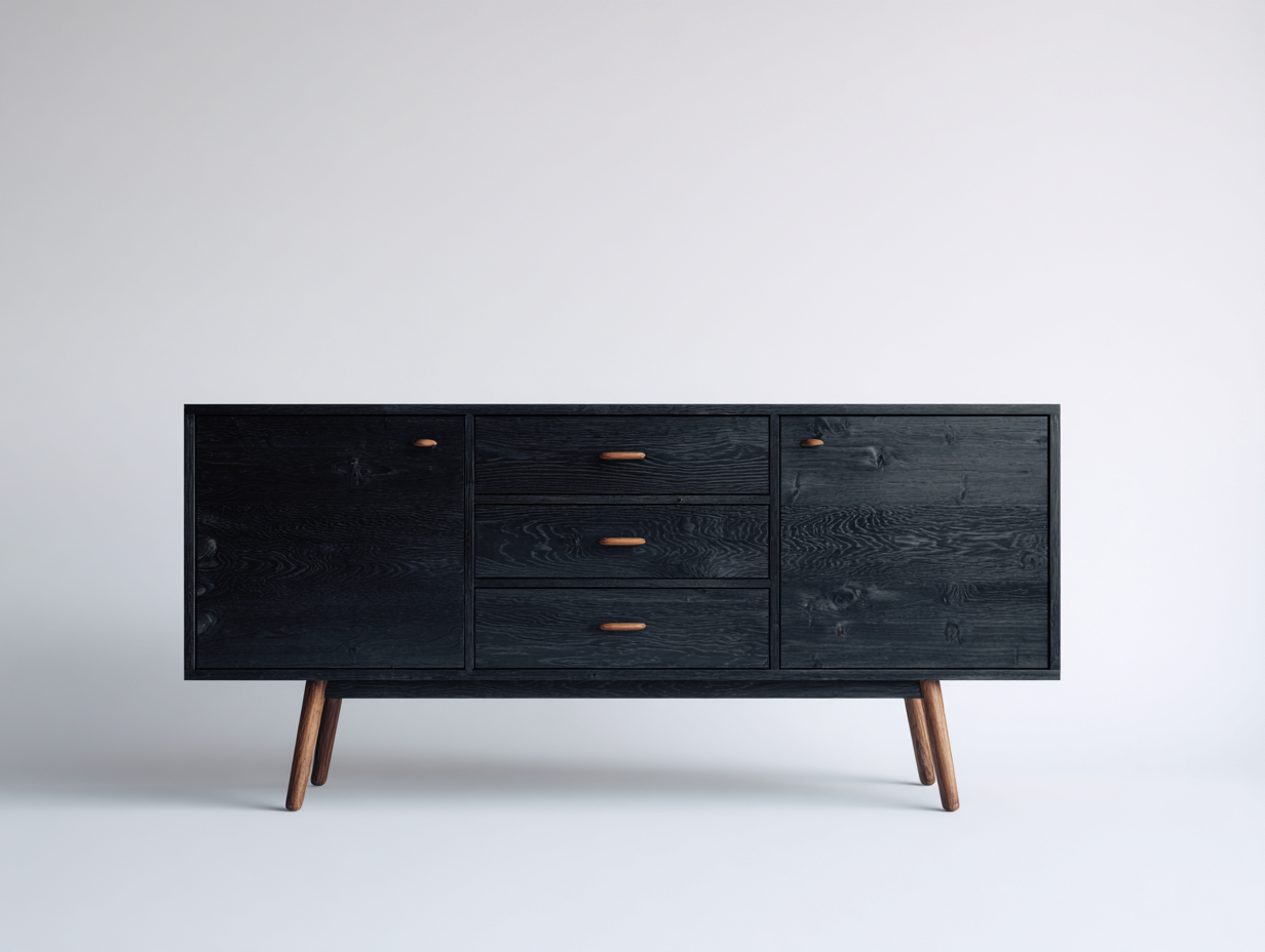 Mueble recibidor madera maciza 160x40x80 cm - negro - diseño moderno con 2 puertas y 3 cajones