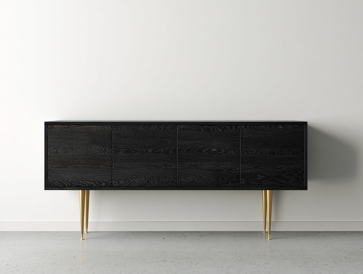 Mueble recibidor de madera 160x40x80 cm negro con 4 puertas diseño moderno para entrada