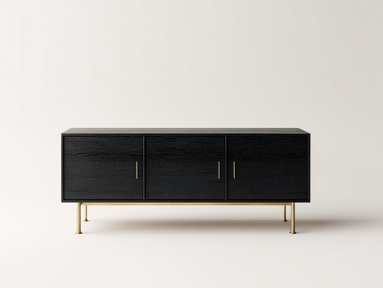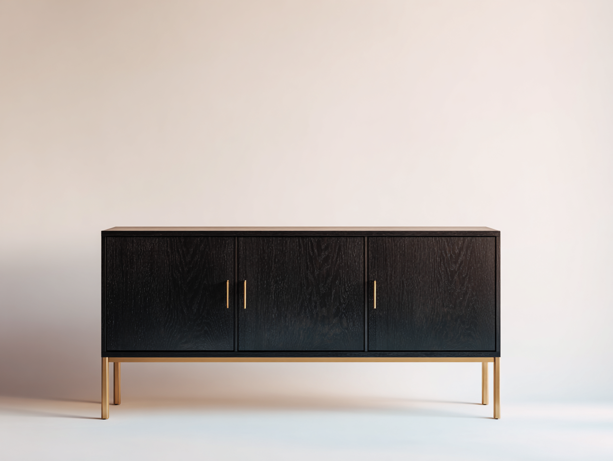 Mueble recibidor de madera 150x40x75 cm negro con 3 puertas diseño moderno para entrada