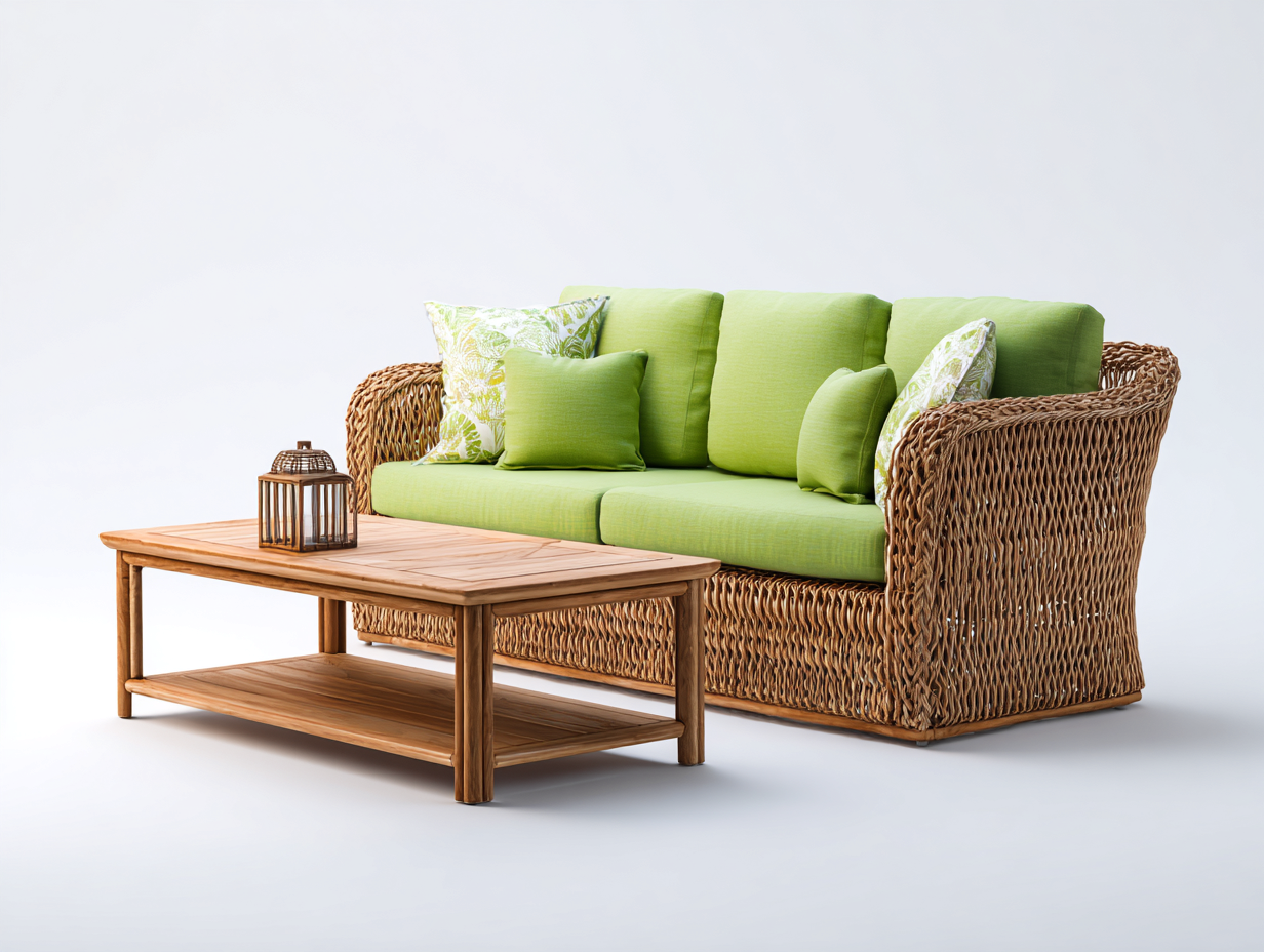Sofás de exterior ratán madera tela 180x80x75 cm - beige-verde - diseño moderno