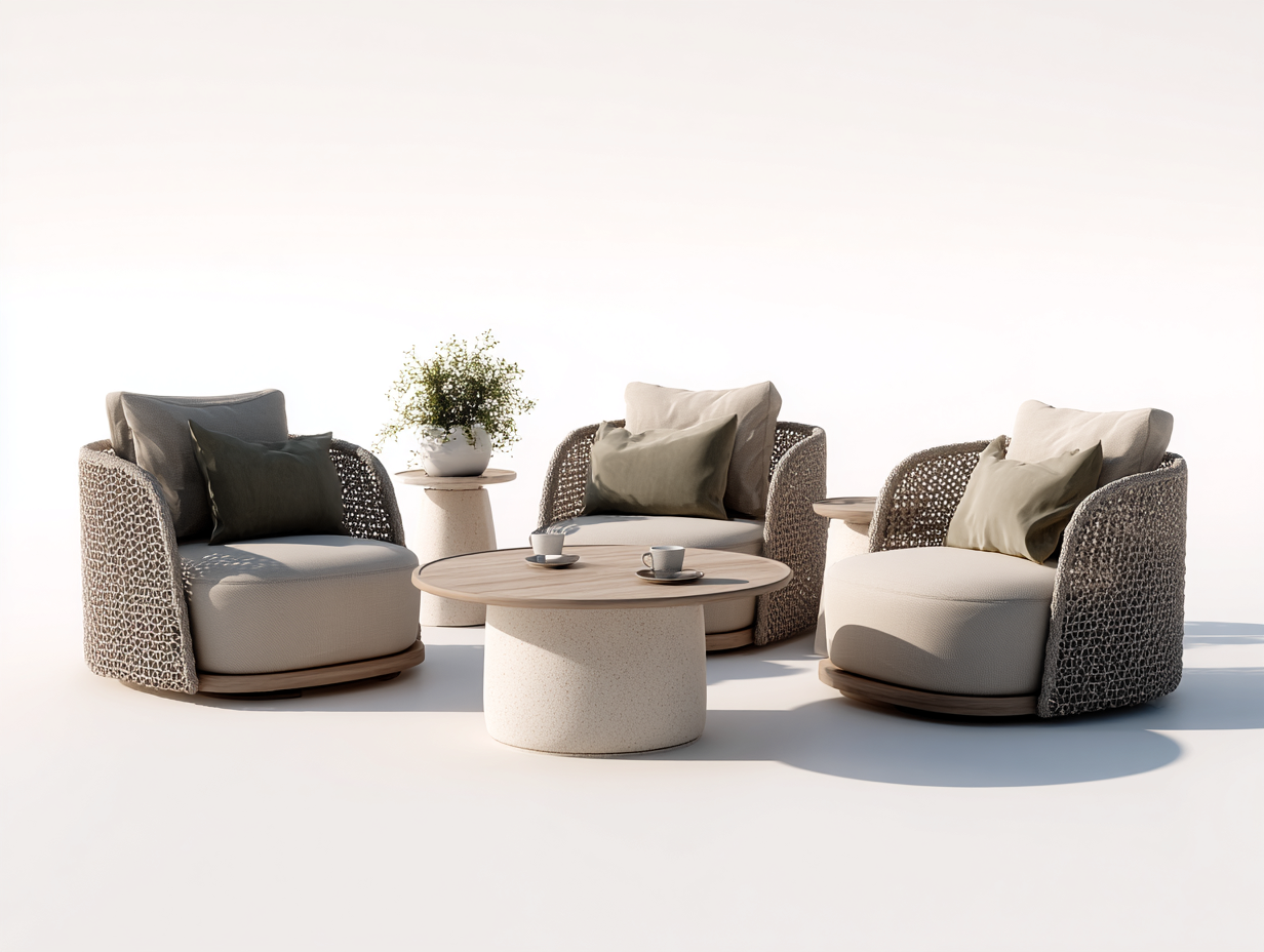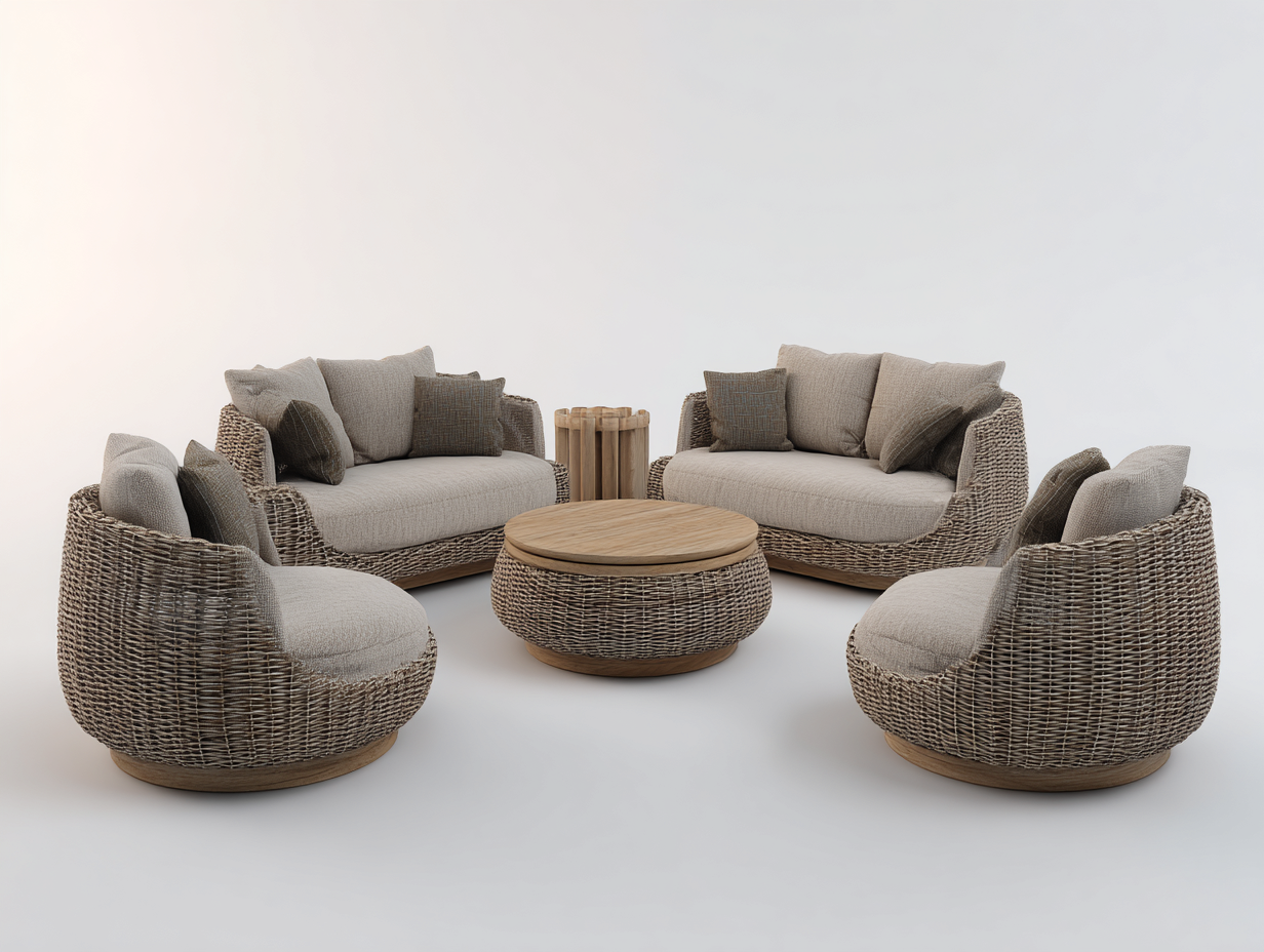 Sofás de exterior ratán madera 4 plazas - beige-marrón - diseño moderno con mesa